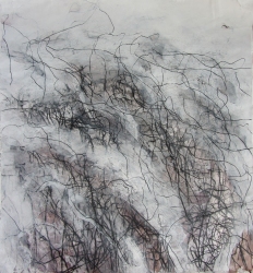 Collaborative Work with Sara Dudman 'Farmer-cam in Field 02:52 - 04:20', gouache, ink, graphite and charcoal on paper, 105cm x 105cm