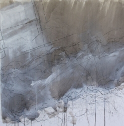 'Sheep-cam in Barn 04:50 - 06:15', gesso, gouache, ink, graphite and charcoal on paper, 120cm x 120cm
